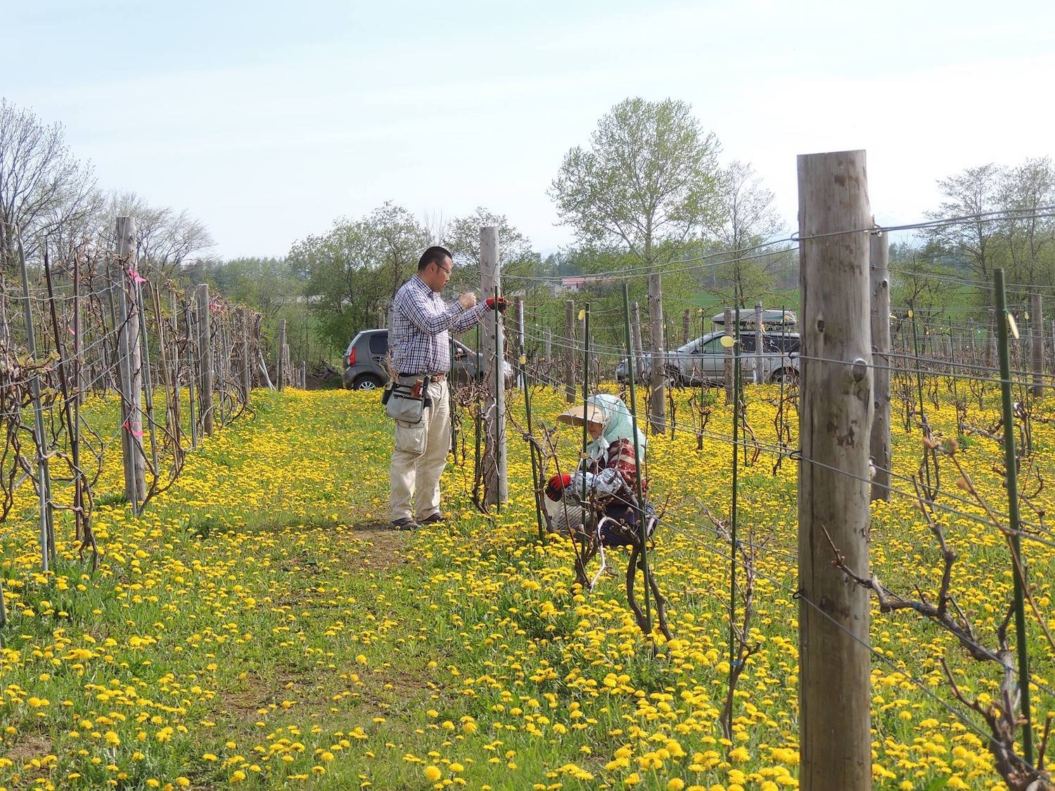 They also insist on creating an environment that is as similar as possible to that of the native grapes in the Tokachi wilderness. Therefore, when cultivating the land, as many trees as possible are left in the surrounding area, and where there are few trees, as many as 2,000 trees of various species are planted. As far as possible, compost made in Tokachi is also applied.