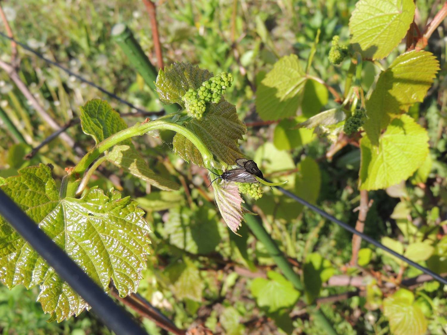 And so, as the trees on the plantation became more numerous and larger, the surrounding nature began to become more diverse and unexpected events began to occur. The number of birds coming to the fields increases year by year, and birds of prey, which had never been seen before, catch mice nibbling on the trees and fly away. Then, other birds whose name they don't even know skewer grapevines with insects such as coccinellids. In autumn, small birds come to eat the grapes in flocks. Pest control is also done by hand, as no pesticides are used, but nature helps them, as when pests appear on the grapes, different insects appear to eat them.