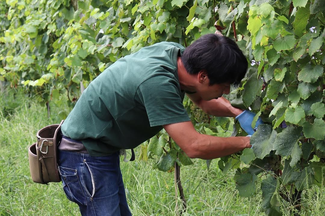 The most important thing they focus on is canopy management. They are very careful about how the environment around the bunches is regulated. Canopy management is the cultivation management of the grapes to control the branches, bunches and vigour of the vine. The reason for the focus on canopy management is that straightening the branches upwards is directly linked to improved quality.