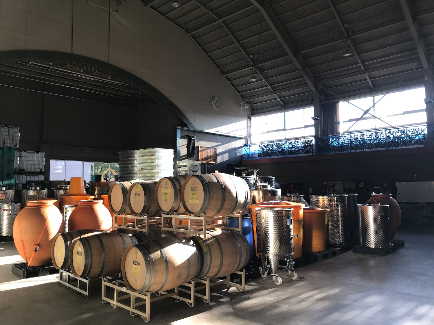 In addition to barrels and stainless steel tanks, amphoras, which are unglazed pots, are also used in the ageing process. The amphoras have the advantage of allowing oxygen to gradually enter the wine through invisible, fine cracks, allowing for slow oxidative ageing without adding oaky aroma. In the future, they would like to make wine using amphoras made from soil from the area where the winery is located.